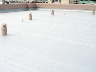 ウレタン塗膜防水は、下地部分に接着剤を塗り、液状の防水剤を重ねて、塗装を吹き付けていく工法です。